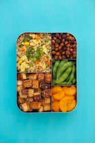 - Prep the tofu, cauliflower fried rice, and roasted chickpeas ahead of time.