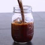 Once strained, transfer DIY cold brew into a mason jar or airtight container and store in the fridge.